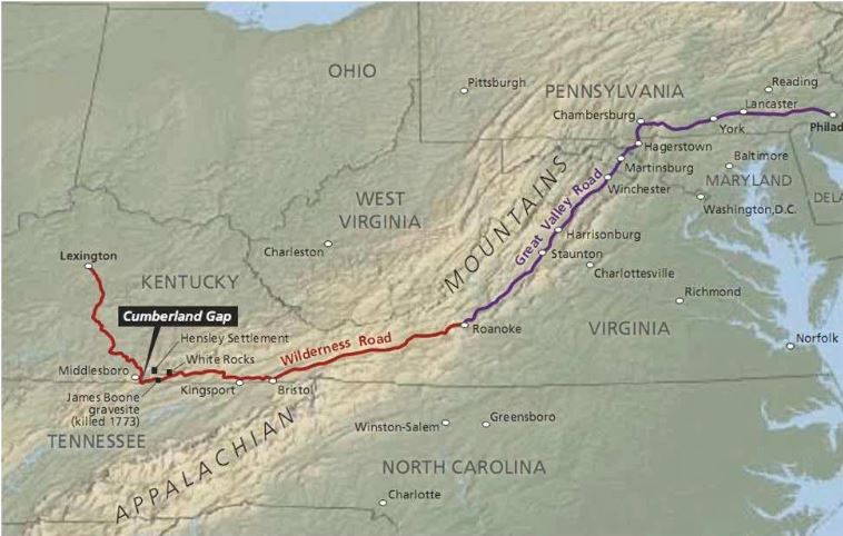 It sounds like a tall tail, but one must wonder if the Zumwalt family traveled over the Great Valley Road to the Wilderness Road to Bourbon County, Kentucky. ⁷ Or did they travel down the Ohio River on a flatboat? We’ll never know.