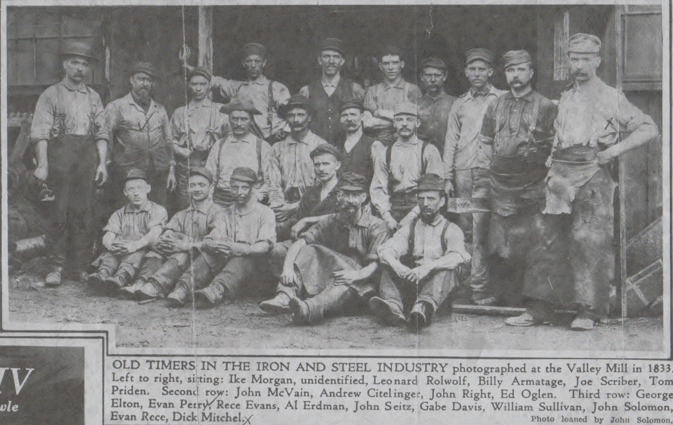 Leaving employment as a miner, Evan became an engineer with Carnegie Steel Company at the Ohio works. He was among one of the first engineers employed by the old Ohio Steel Company during the early years of construction.
